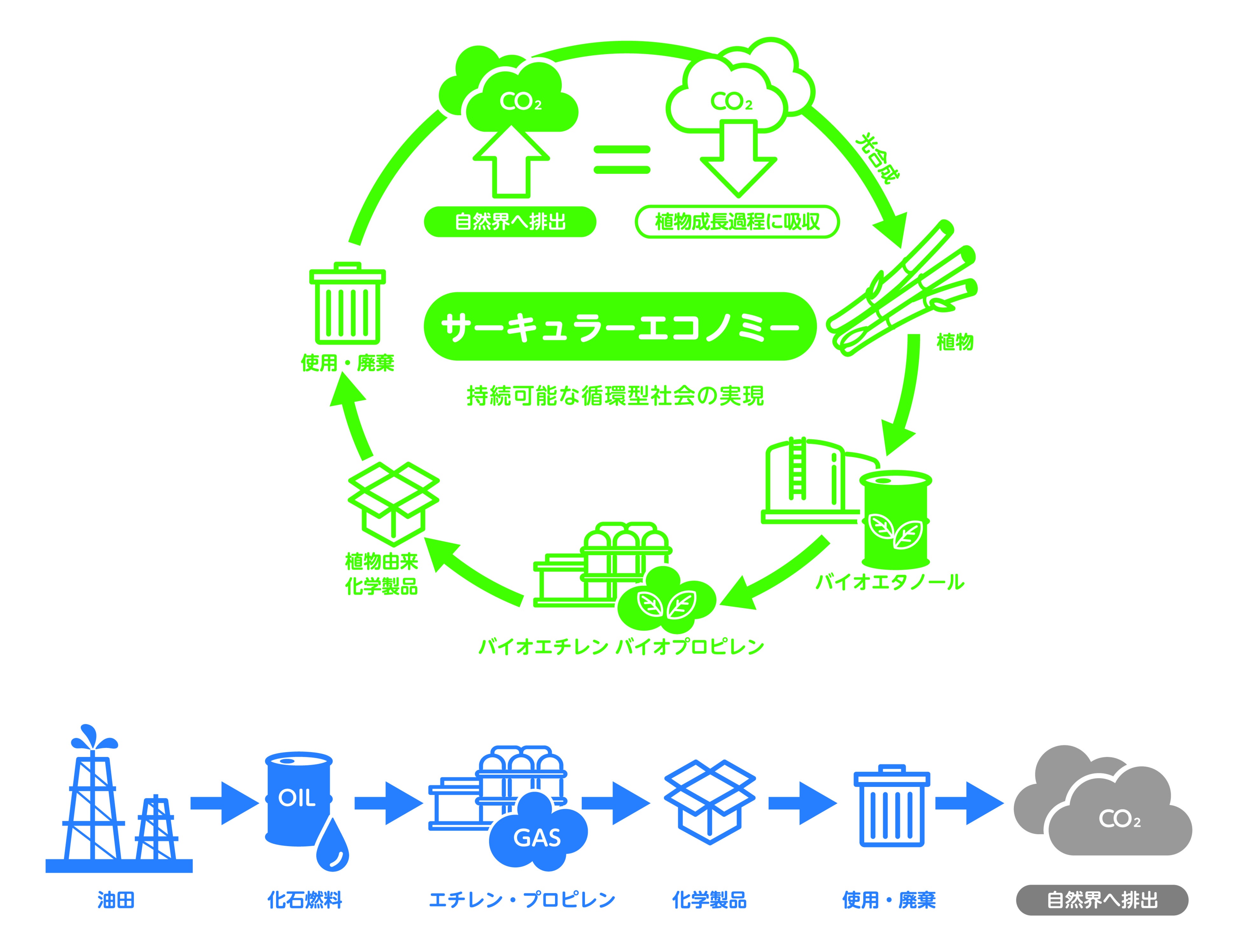 三菱ケミカルおよび豊田通商は、各種リサイクルの事業化に取り組んでいるほか、原料を化石燃料から植物由来へと転換することで、循環型社会の実現を目指しています。