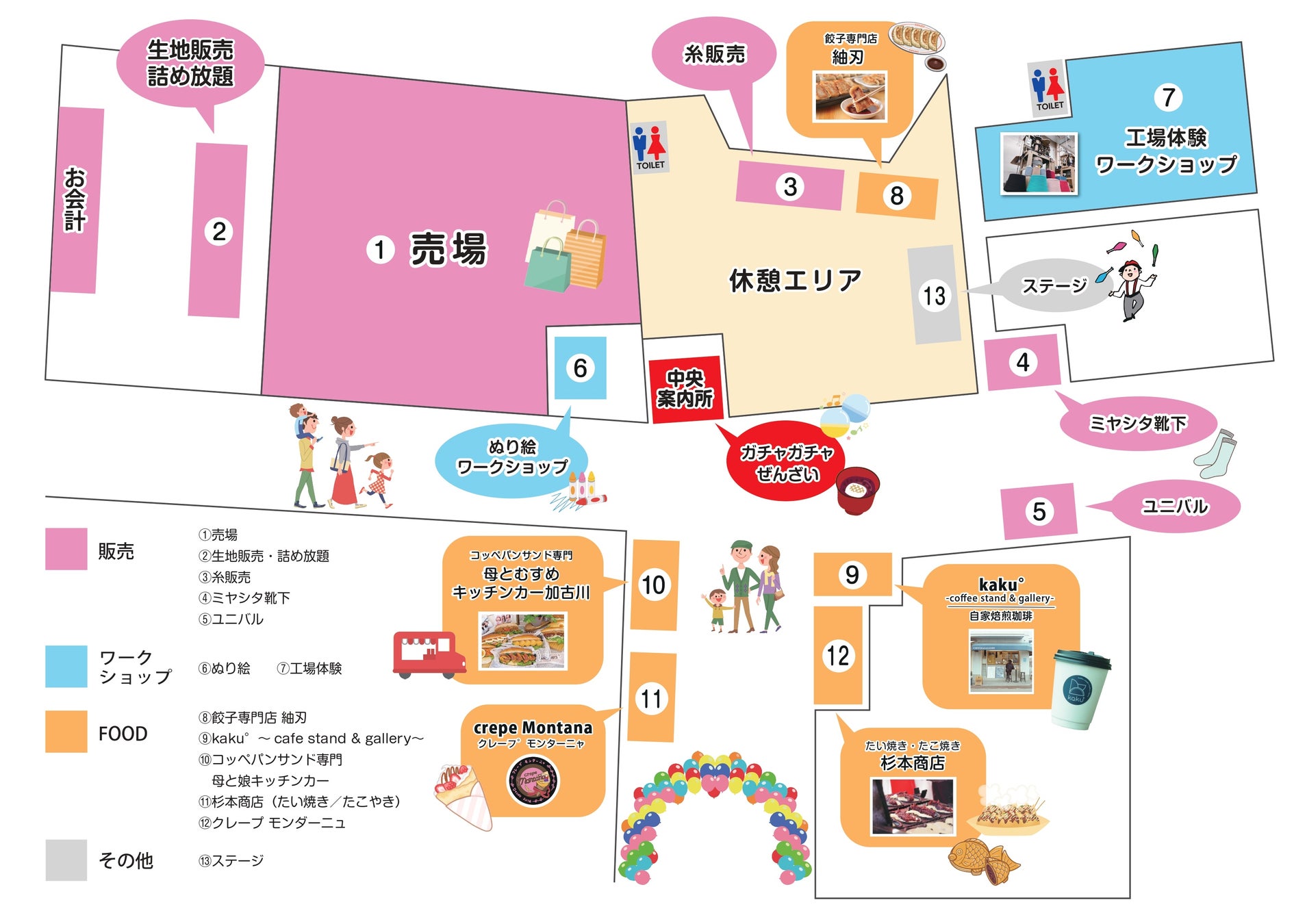 生産現場を体験・体感してもらうことを目的としたお祭りのようなイベント。買うだけでなく、ワークショップ・工場見学・編み機を改造したガチャガチャ・キッチンカーなど食や遊びを通して日本のモノづくりを身近に。