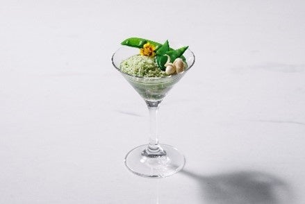 □アミューズ「グリンピースのパウダーアイス 野菜のパルフェ」