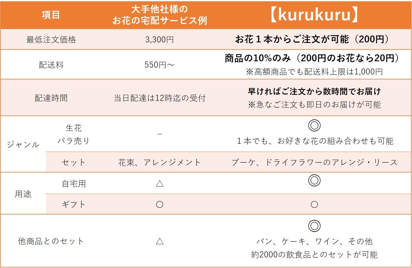 ■「kurukuru(クルクル)」の「お花」のデリバリーサービスの特徴