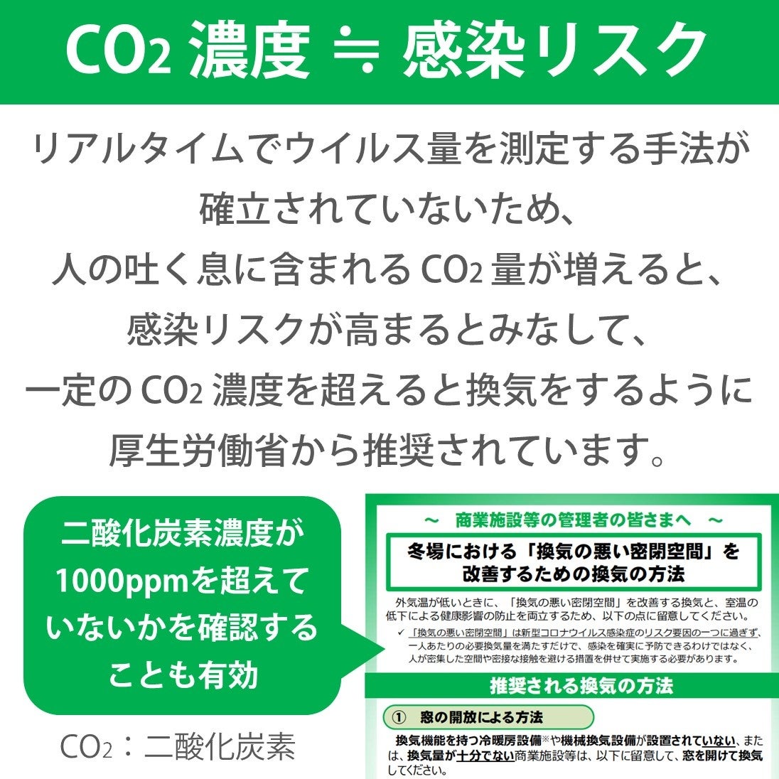 切替CO2濃度:100ppm 単位で設定可能(初期値 1000ppm)
