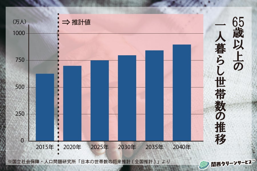 - 孤独死は増加傾向。2040年代、高齢者の一人暮らしは約1.3倍、900万世帯 超へ