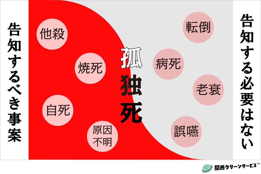 - 孤独死で告知が必要とされる「いわゆる特殊清掃」と、ハウスクリーニング等の清掃の線引きは曖昧な部分も
