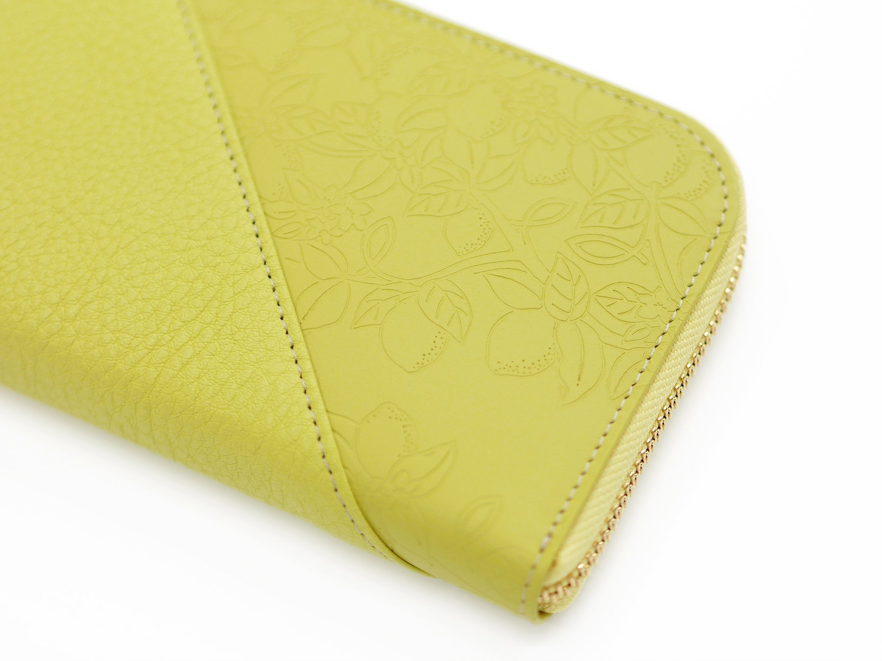 一年の始まりにふさわしいフレッシュな「レモン」のモチーフを引手や型押しに施した、新春スモールレザーシリーズ「リモーネス(=レモンの木)」。イビサ島の春を思わせる明るいカラーリングのお財布シリーズです。