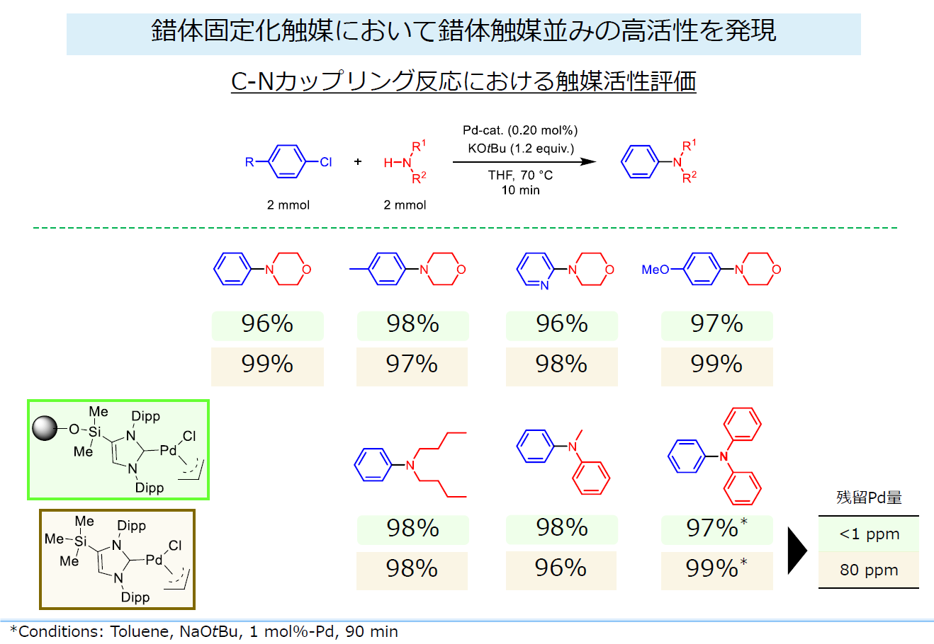 ~有機電子材料や医薬品等の合成に必要なC-Nクロスカップリング反応における触媒使用量の低減およびパラジウムの低残留化による反応後精製工程の省力化が可能に~