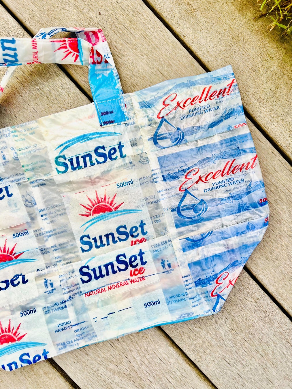 ガーナで売られている袋に入った飲料水、ピュアウォーター。ペットボトルより安いため多くの人に飲まれていますが、この袋のゴミが街中の至るところに落ちており、ゴミ問題の大きな要因の一つとなっています。