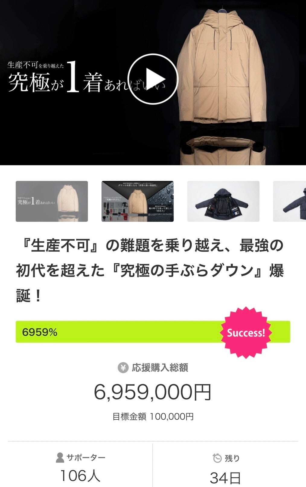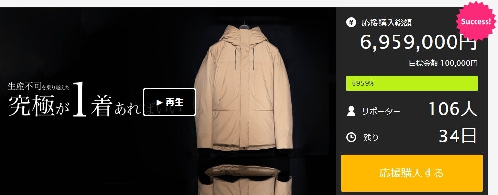MakuakeでダウンJKTとしては「No.1」の最強手ぶらダウンジャケットを超える究極の1着が完成!!