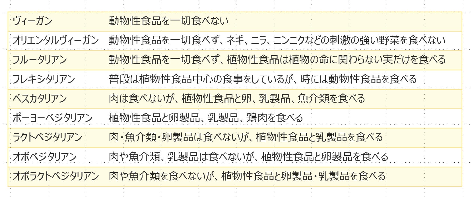 今回の調査での「ヴィーガン・ベジタリアン消費者」とは以下を含みます。