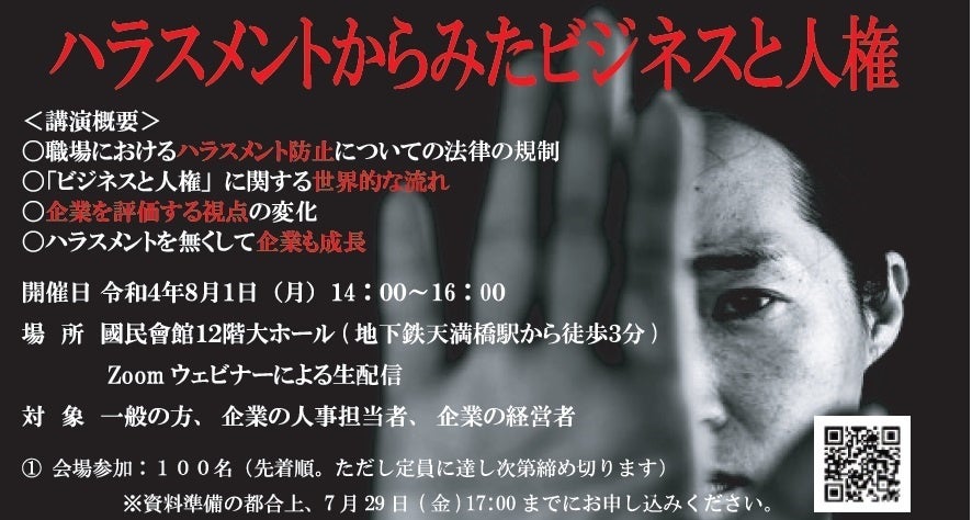 本公演ではハラスメントの防止の観点から「ビジネスと人権」について分かり易く紐解いていきます。