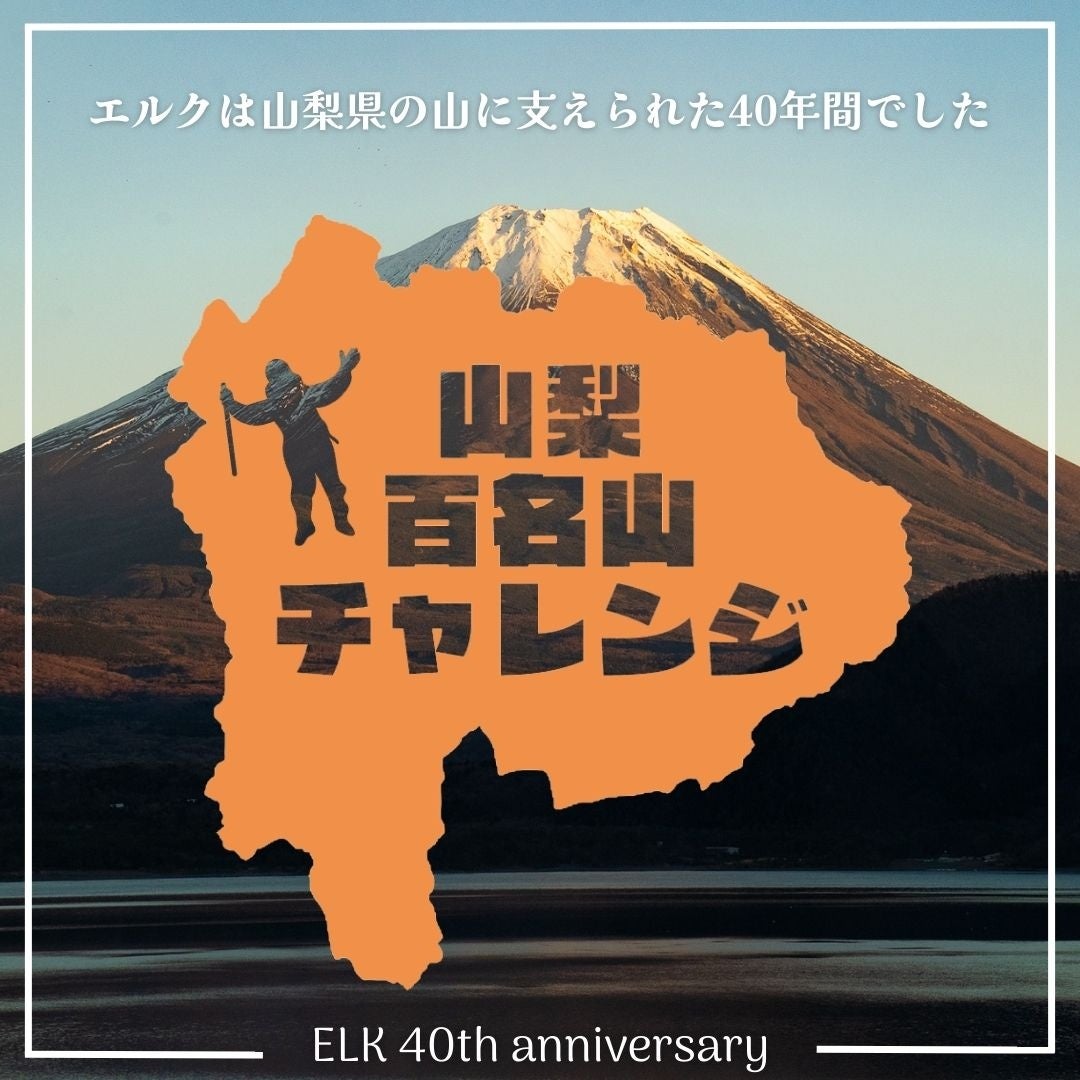 ELK創業40周年を記念してスタッフが山梨百名山を盛り上げるため、「ELKスタッフで山梨百名山を制覇しよう」という企画を立て、エルク店舗内に百名山マップの看板を掲出したり、スタッフによる山行記録をブログで公開するなどプロモーションを行っています。