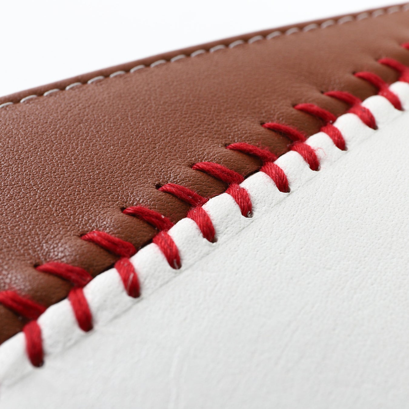 その特徴的な赤いの縫目デザインは、野球ボール製造の職人によって一つひとつ手作業で施してあります。