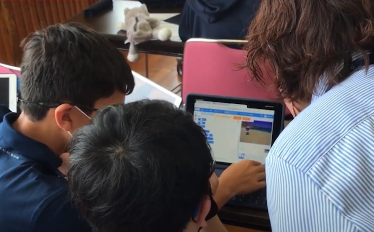 「プログラミング」「SDGs」「チームビルディング」「課題設定」等を「英語」 を使ってインプット・アウトプットを繰り返しながら学んでいきます。