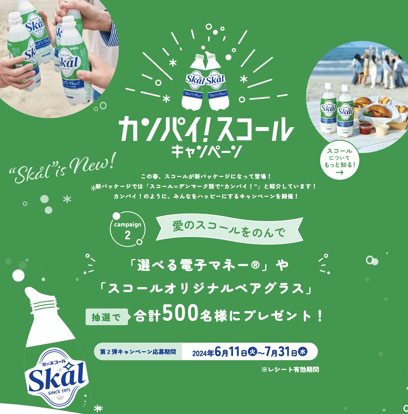 選べる電子マネー®やスコールオリジナルペアグラスが抽選で合計500名様に当たる!