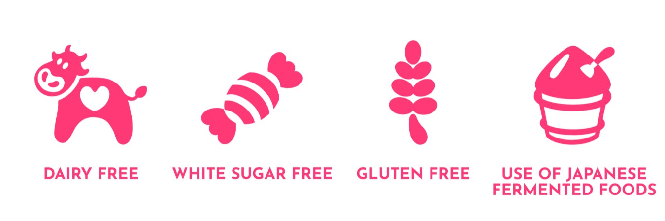 「毎日や人生を"ワクワク=Up beat"させるヴィーガンスイーツを届けたい」というミッションを掲げ、こだわりの100%植物性食材から誕生したヴィーガングルテンフリースイーツ。