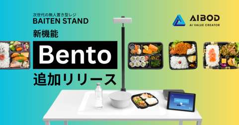 AIBODが開発した無人店舗サービスBAITEN STANDに、サラリーマンのランチ難民を救う新機能「Bento」を追加リリース! フードデリバリーと卸売配達を掛け合わせた画期的サービス。