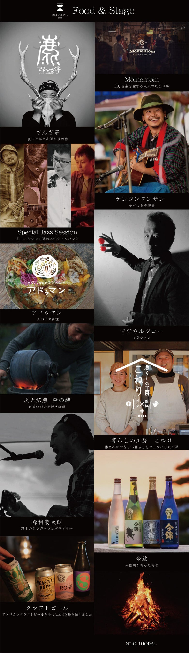 - 「絶景の中で聴きたい音」をコンセプトに、長野県内外の音楽家が大自然の壮大なるショーに音を添えます