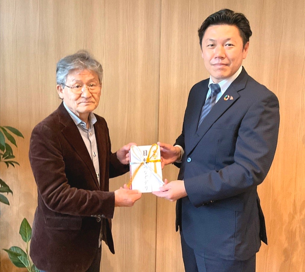 2022年4月21日 つなぐデリを運営する「フードガレージ株式会社 代表取締役 白岩 智」(下写真右)は、「NPO法人さいたまユースサポートネット 代表 青砥 恭 氏」(下写真左)に、つなぐチャリティ弁当により集まったチャリティ基金を寄付致しました。