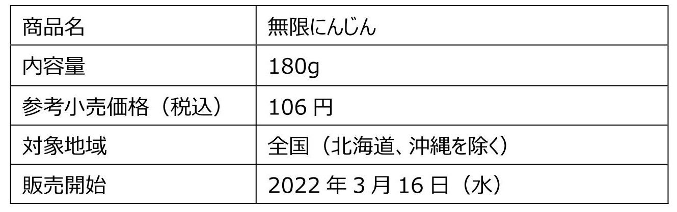 株式会社サラダコスモ(代表取締役:中田智洋、本社:岐阜県中津川市)は、2022年3月16日(水)から、新商品カット野菜「無限にんじん」を発売開始します。カット野菜の彩りとして活躍してくれる名脇役「にんじん」を、あえて主役として、無限に食べられるくらい美味しい商品を作ろう。そんな社内での発案がきっかけで生まれたカット野菜です。