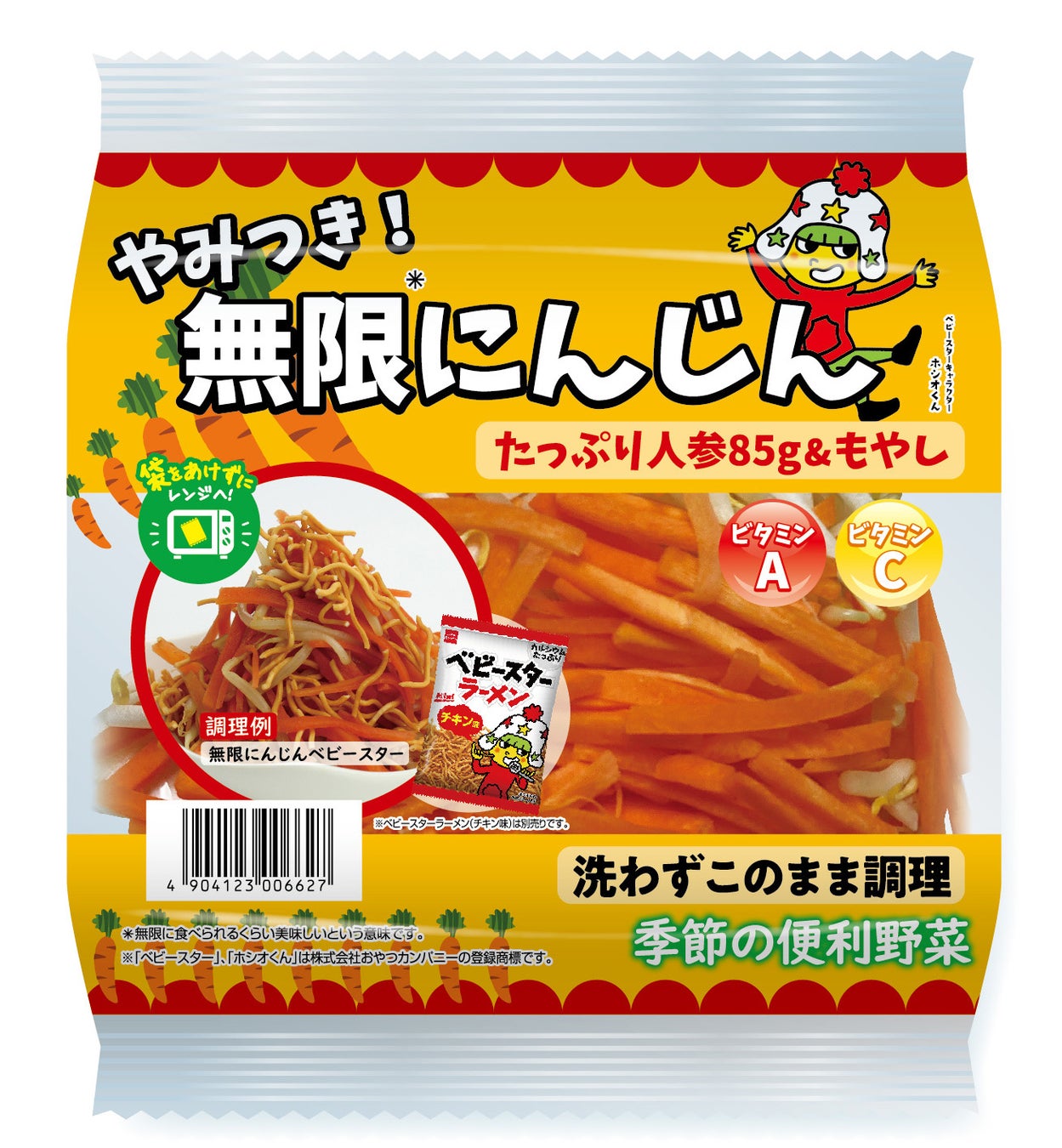 ベビースターラーメンで野菜を美味しく楽しく! やみつきカット野菜『無限にんじん』新発売
