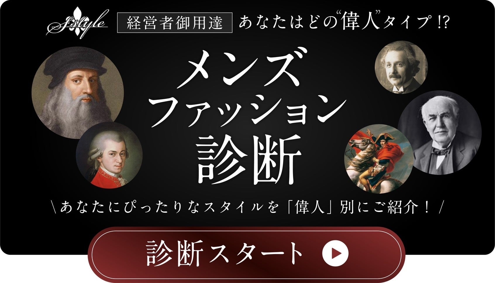 あなたのファッションはどの偉人タイプ?S-styleが話題の診断コンテンツをリリース!