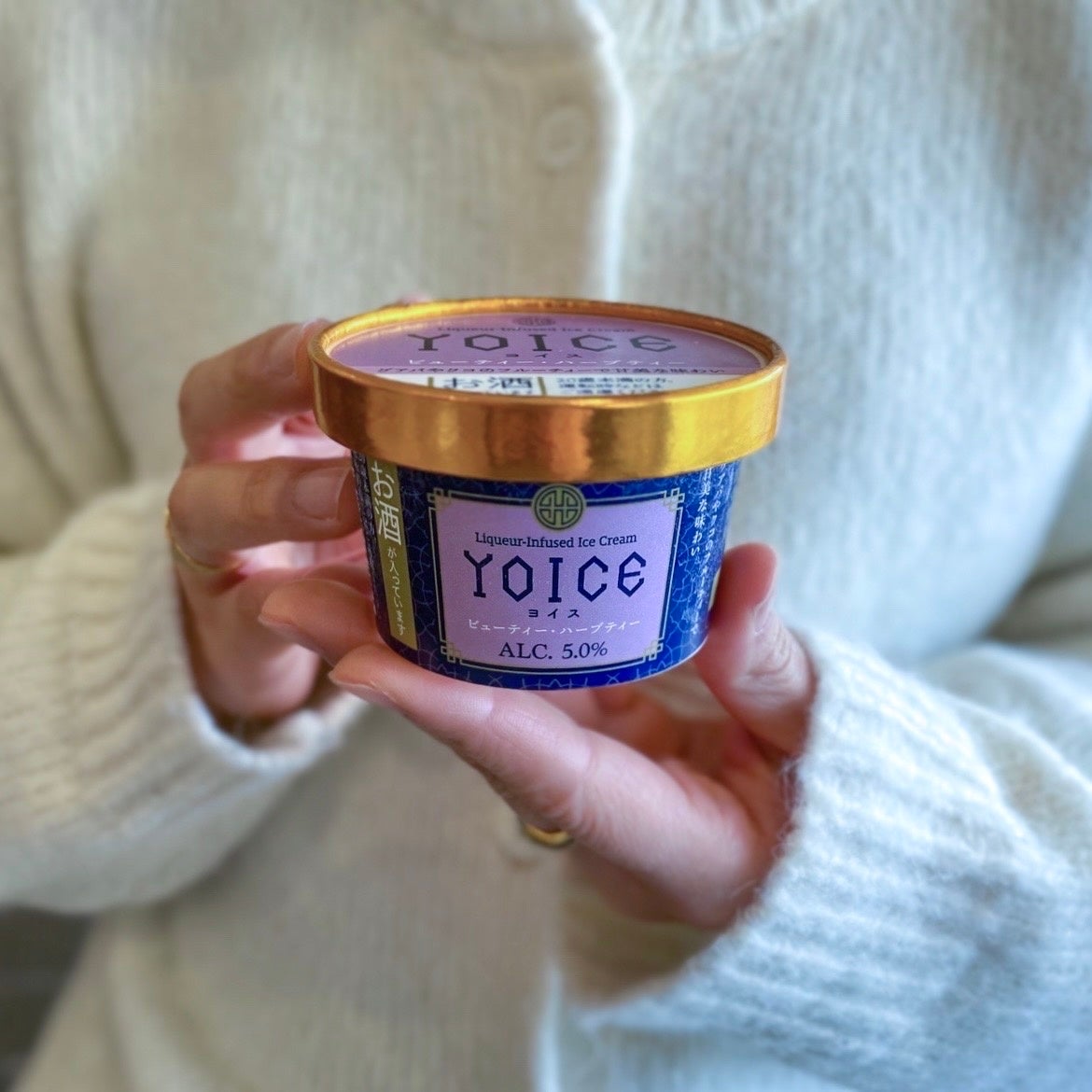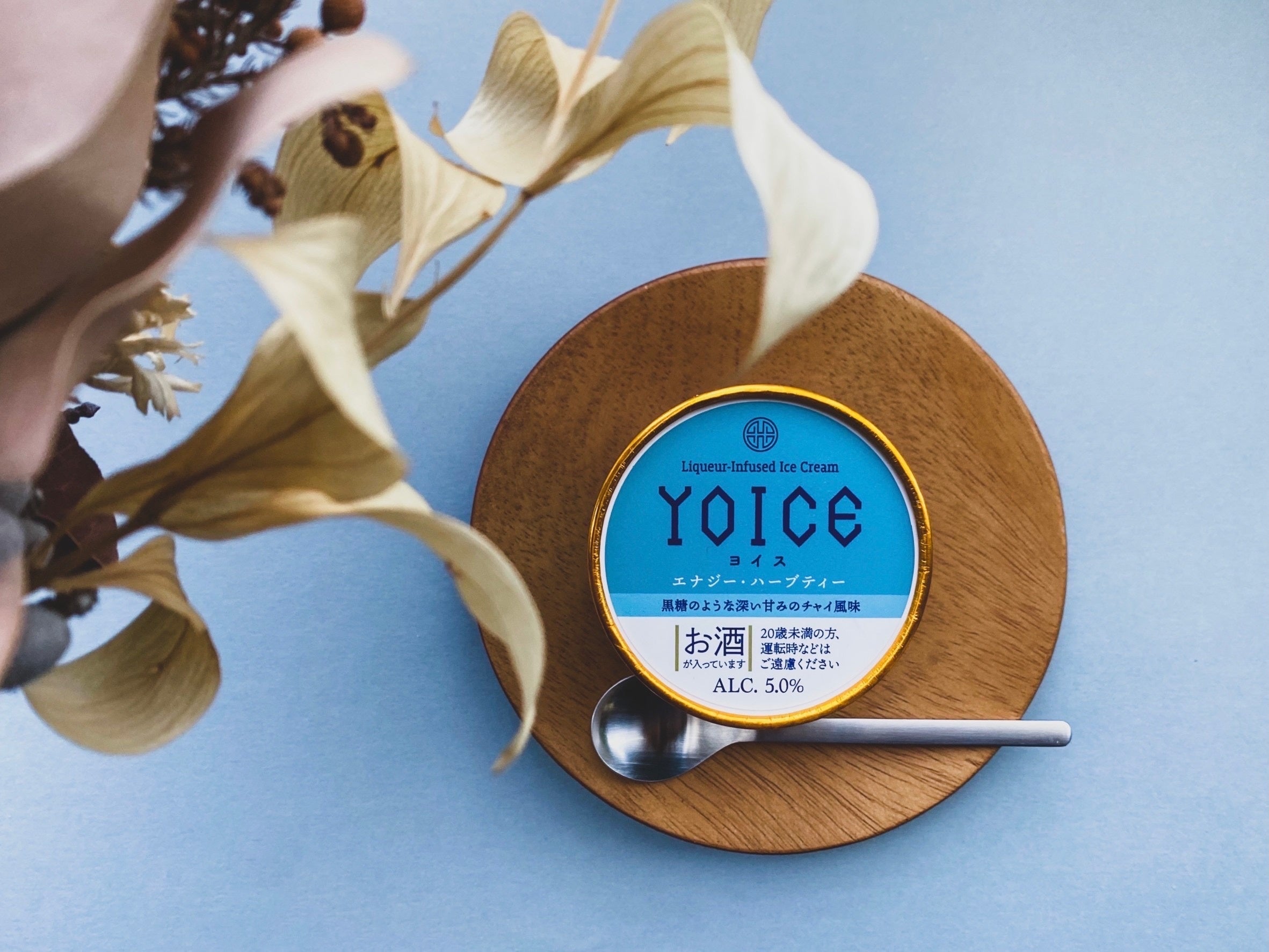 「YOICE(ヨイス)」はハーブリキュールをつかったアルコール度数5.0% 上品な甘さの大人のほろ酔いアイスクリームです。味わいはフルーティーでカクテルのような美味しさを追求しました。従来の微量のアルコール分(1%未満)を含有したアイスクリームとは全く異なり、原料にハーブリキュールをたっぷりと使用して高アルコール度数の大人な味わいを実現しました。