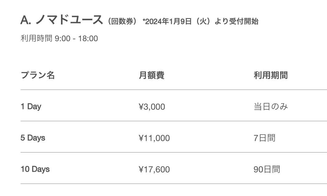 ※ノマドプラン利用者は有効期間中に限り回数券一回分を消費して利用可能です。