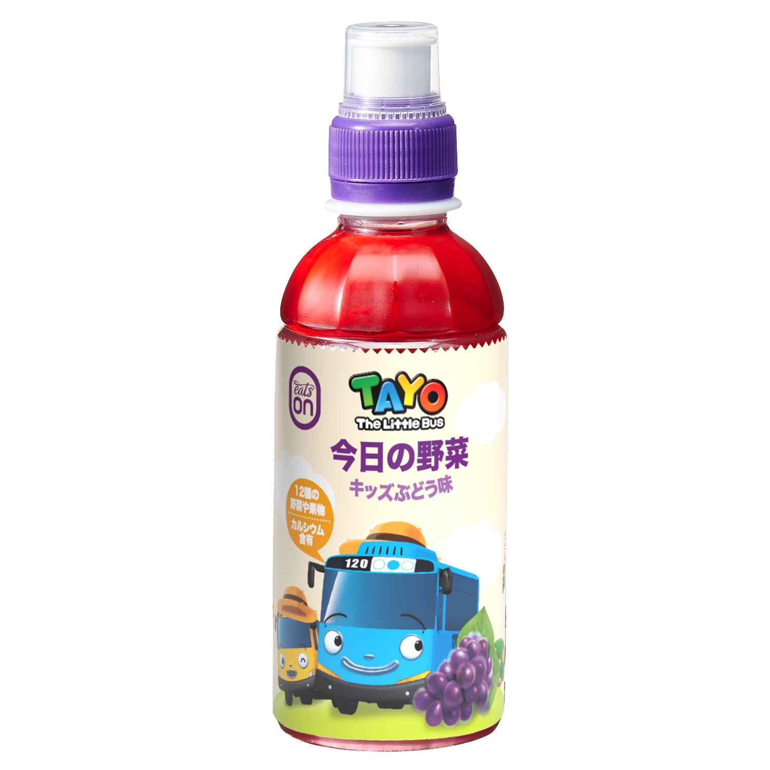 ちびっこバス タヨ「今日の野菜」ぶどう味、りんご味の二種類が新しく販売開始