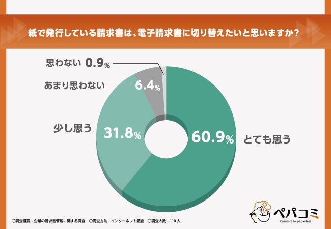 そこで、「紙で発行している請求書は、電子請求書に切り替えたいと思いますか?」と質問したところ、