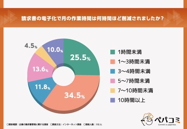 そこで、「請求書の電子化で月の作業時間は何時間ほど削減されましたか?」と質問したところ、