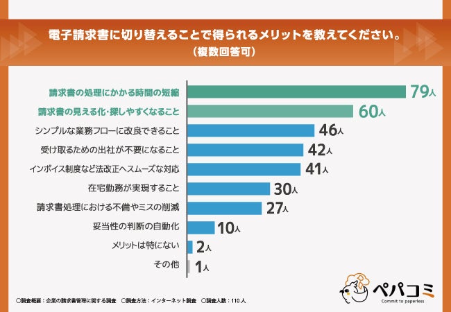 そこで、「電子請求書に切り替えることで得られるメリットを教えてください。(複数回答可)」と質問したところ、