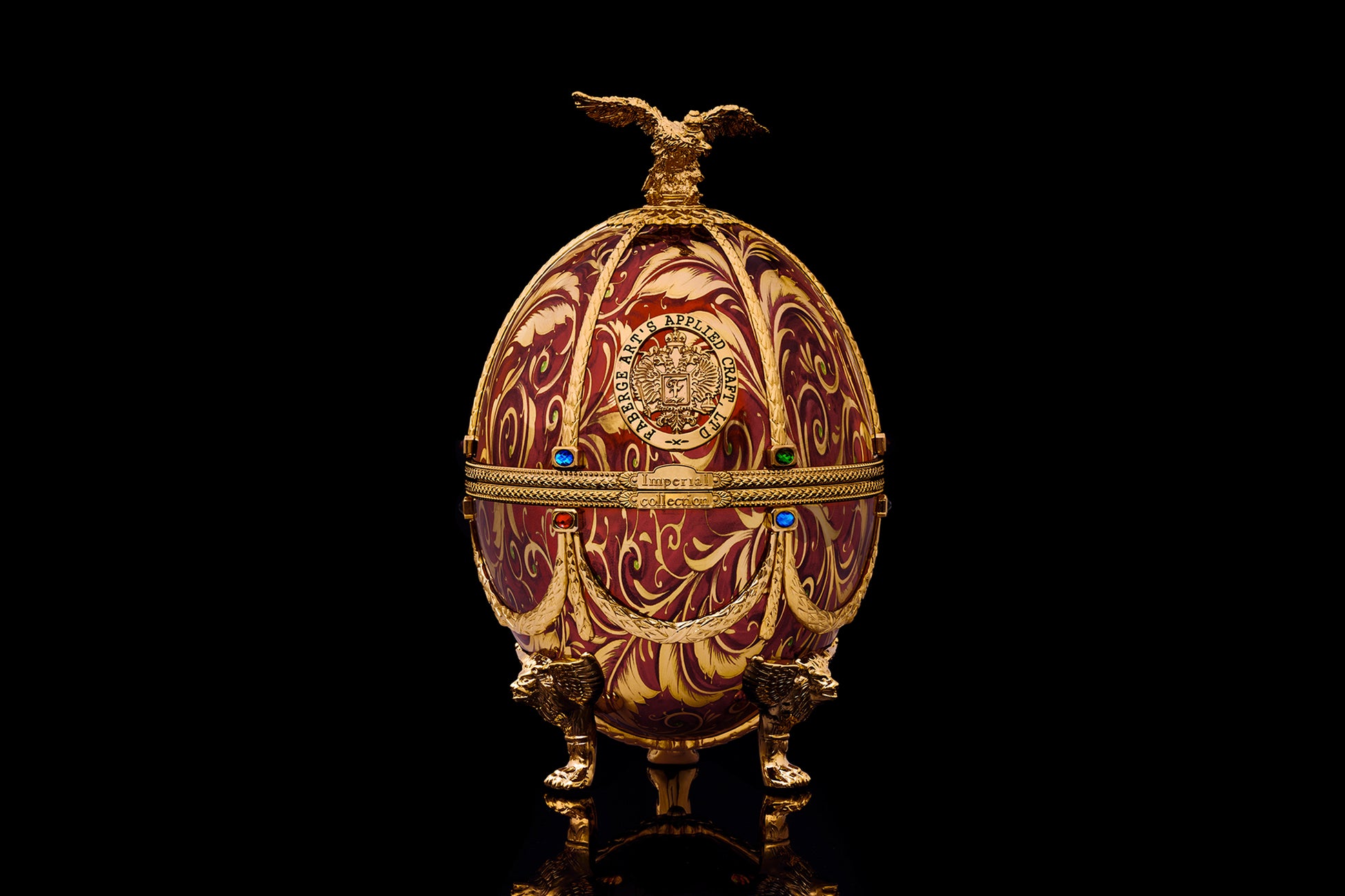 絢爛豪華な装飾を纏ったエッグの中には、優美なヴェネツィアングラスに装飾を施したデキャンタと4つのショットグラスが収められています。そのデキャンタに詰められているのは、伝統的製法で精緻に造られたスーパープレミアムウォッカ。クラフトマンシップのすべてを結集させた、ハンドメイドコレクションです。