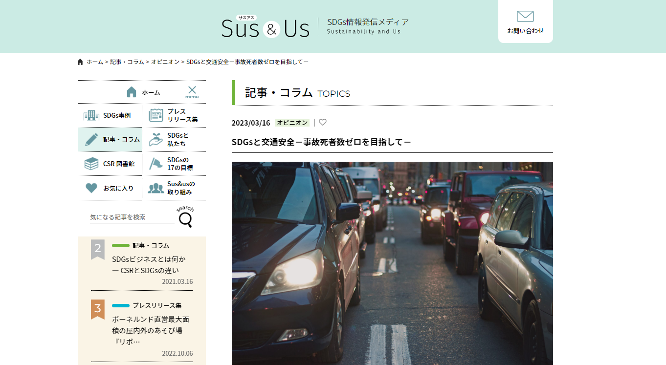 「記事・コラム」では、SDGsに関する基礎知識やトレンド、注目のトピックスなどを「Sus&Us-サスアス-」編集部によるオリジナル記事でご紹介しています(https://susus.net/topics/)。