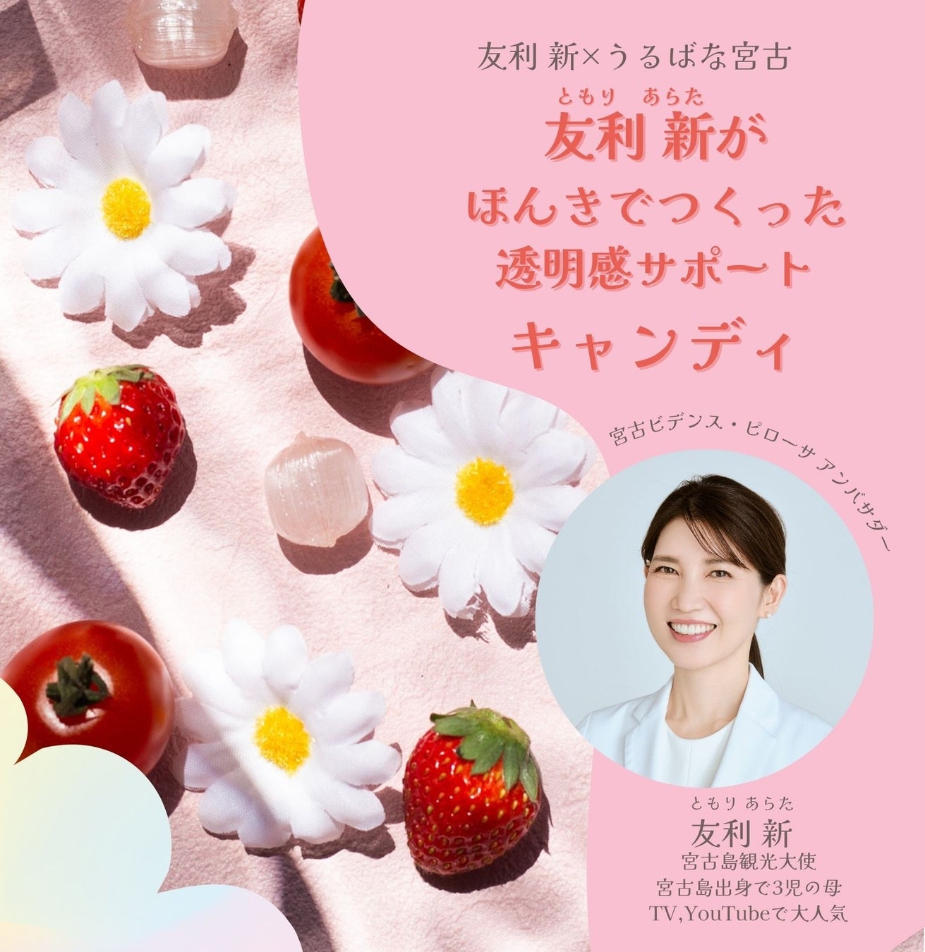 株式会社うるばな宮古は、宮古島の自然素材と美容科学をかけ合わせた『友利新がほんきでつくった透明感サポートキャンディ』を2025年7月6日に発売いたします。