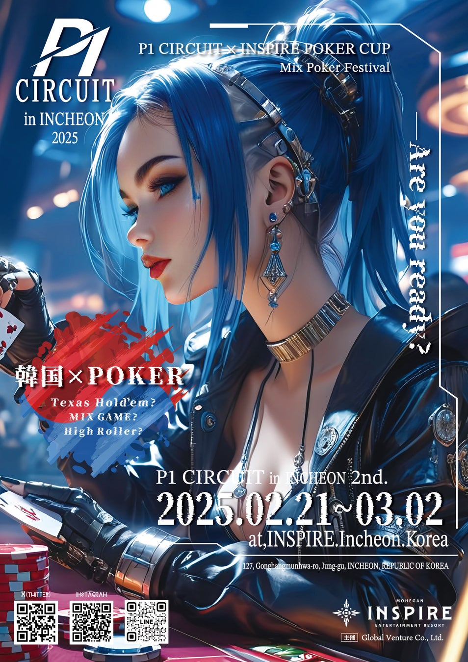 GLOBAL VENTURE Co.,Ltd.(本社:韓国仁川市 2025年1月設立・代表取締役 小林弘和)は、2025年2月21日(金)~3月2日(日)の期間でインスパイア・カジノ内の「ポーカールーム」にて『P1 CIRCUIT in INCHEON 2nd』を開催します。