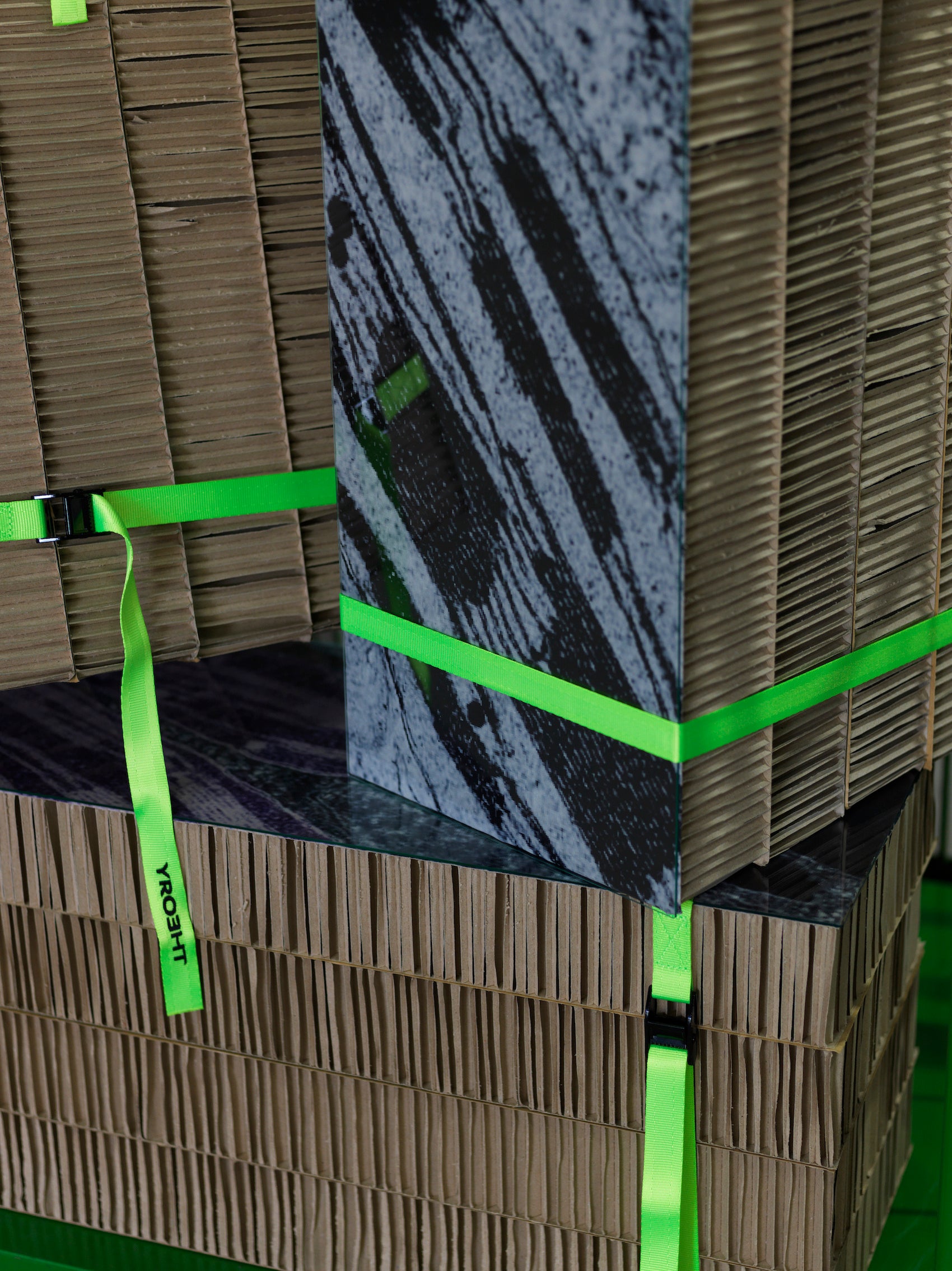 ・荷姿から着想。梱包資材である段ボールをインテリアオブジェクトに再構築しました。