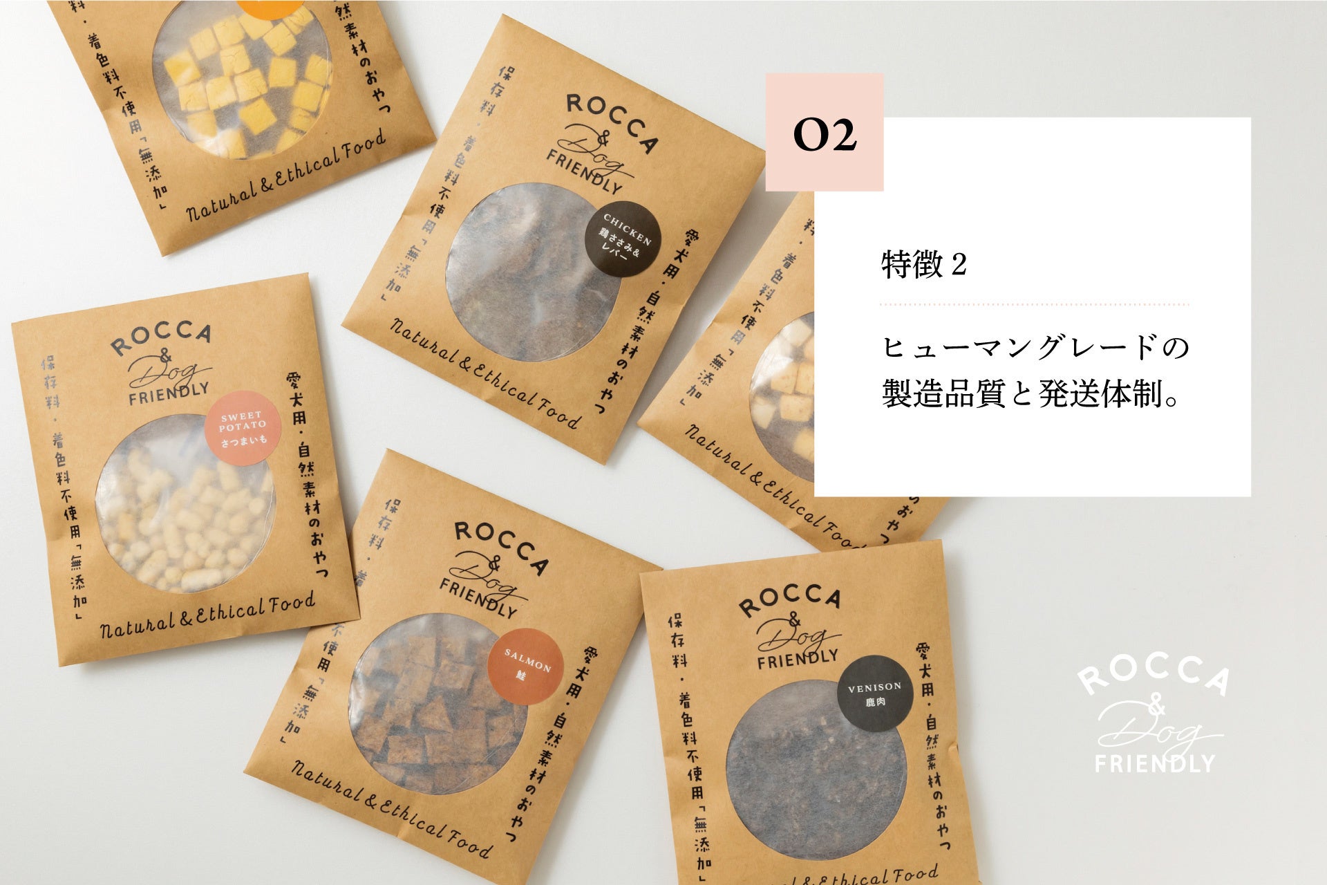 厳選した素材にこだわる「ROCCA&FRIENDS」 が、昨今の「ペットの家族化」に注目し、愛犬を家族のように思っている方、愛犬の食生活への不安や悩みをもっている方に「犬の身体に優しい無添加おやつとごはん」を提供いたします。