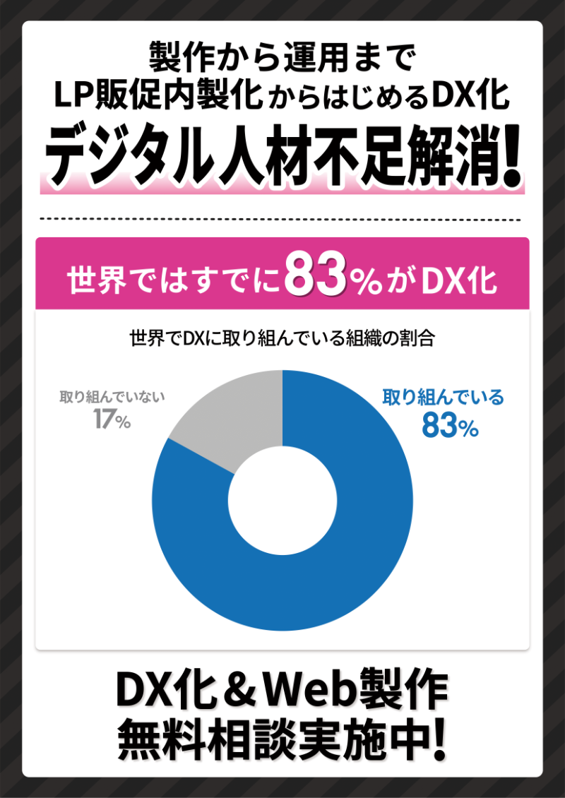 製作から運用まで、LP販促内製化からはじめるDX化をご提案いたします。