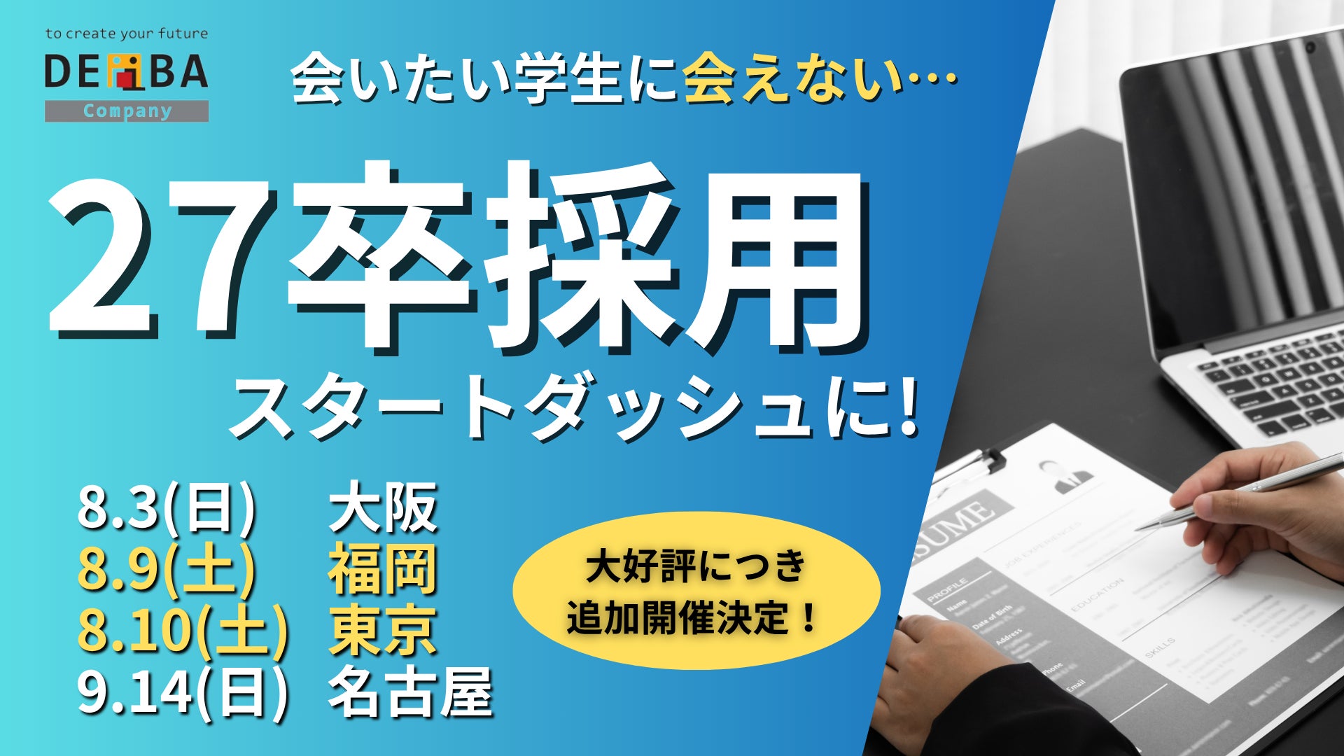 【27卒採用のスタートダッシュに!】対面型就活イベント『デアイバ』が東京・大阪・名古屋で開催|“出会えなかった学生”との接点を創出