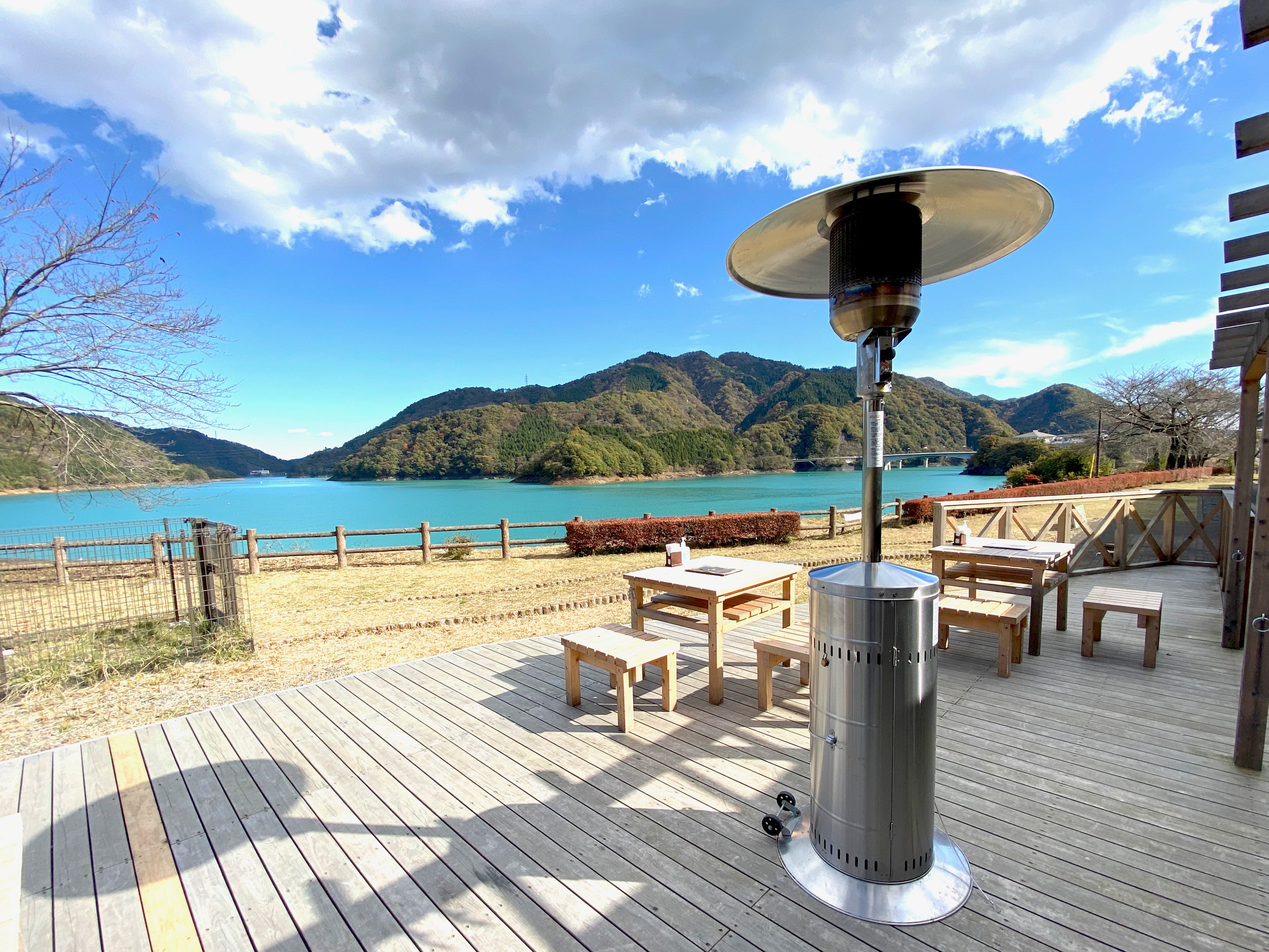 また宮ケ瀬湖を一望できる自慢のテラスではストーブやひざ掛けもご用意しておりますので安心してご利用いただけます。