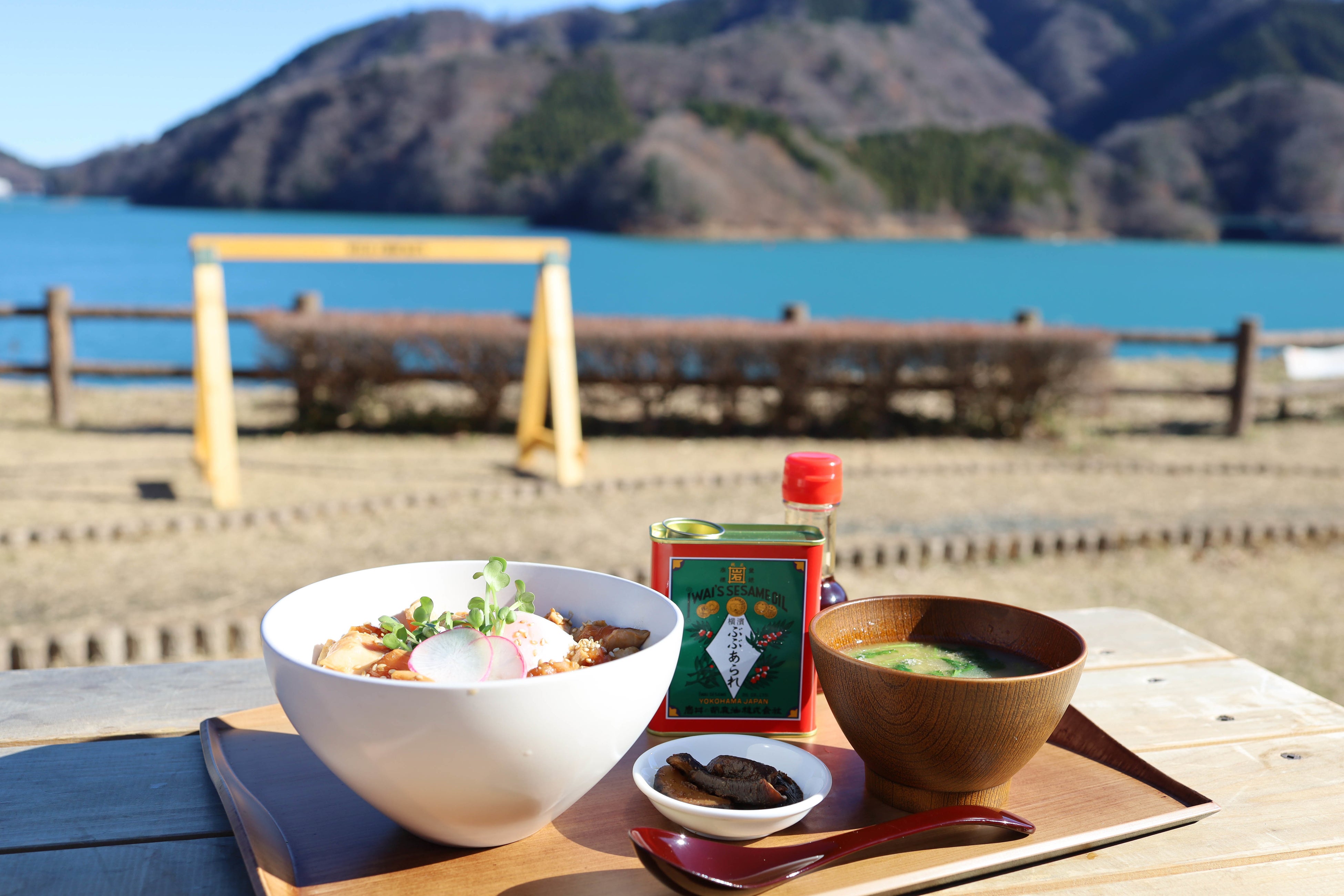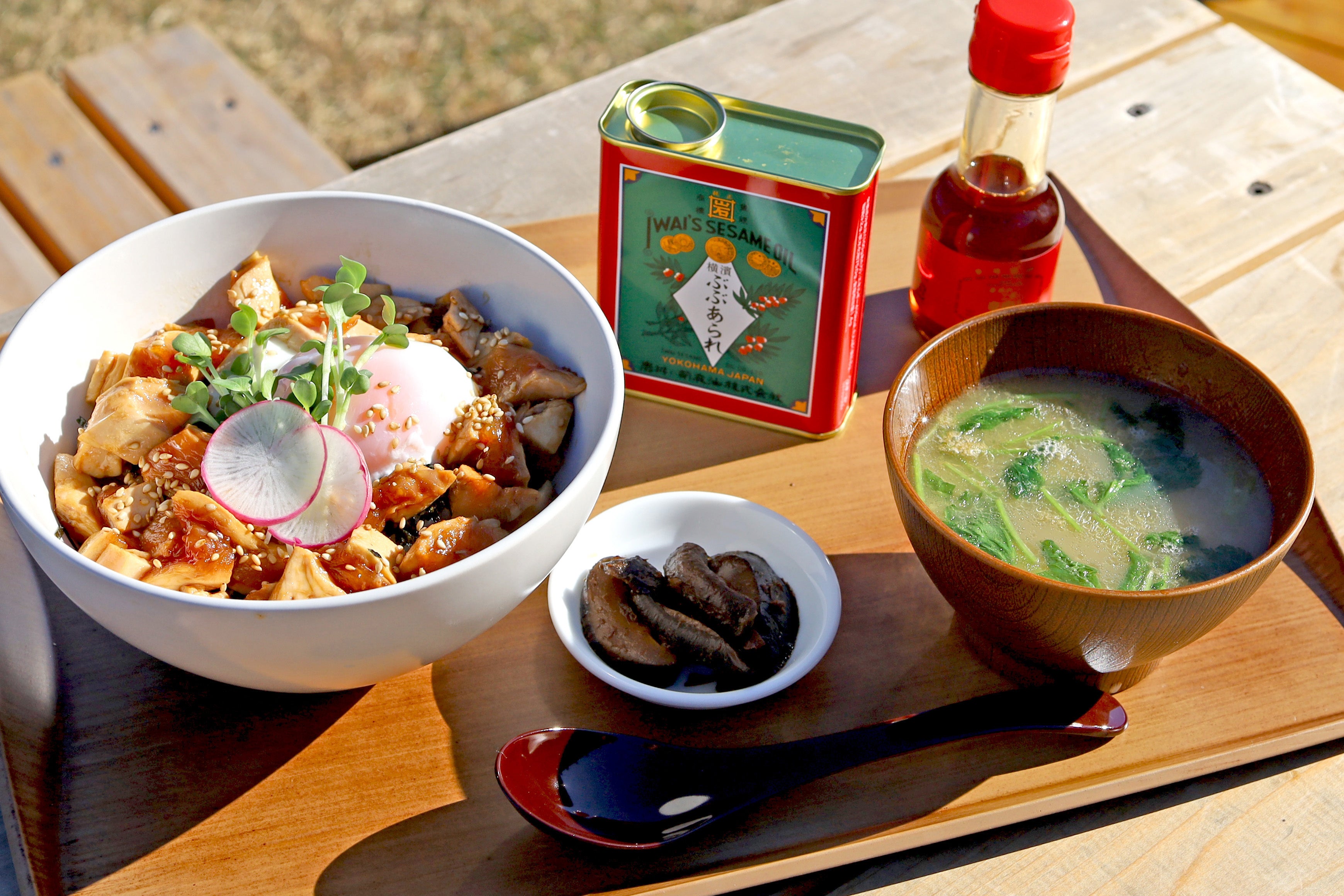 同じ神奈川県内にある伝統の技を生かし、手間を惜しまず「食の安全、安心」「健康で美味しく、高品質な商品」を提供されている「岩井の胡麻油」をからめて熱々のごはんに乗せて仕上げました。