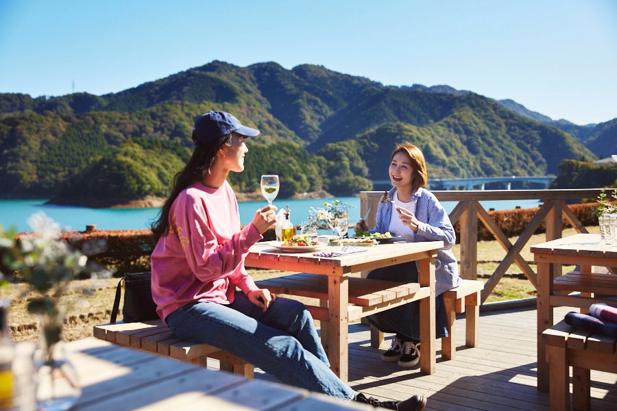 宮ケ瀬湖を一望できる広いデッキにて「丹沢滋黒軍鶏 じぐろ塩ラーメン」や「丹沢滋黒軍鶏 親子丼」を中心に、「丹沢滋黒軍鶏」を存分に生かしたメニューをご提供しております。