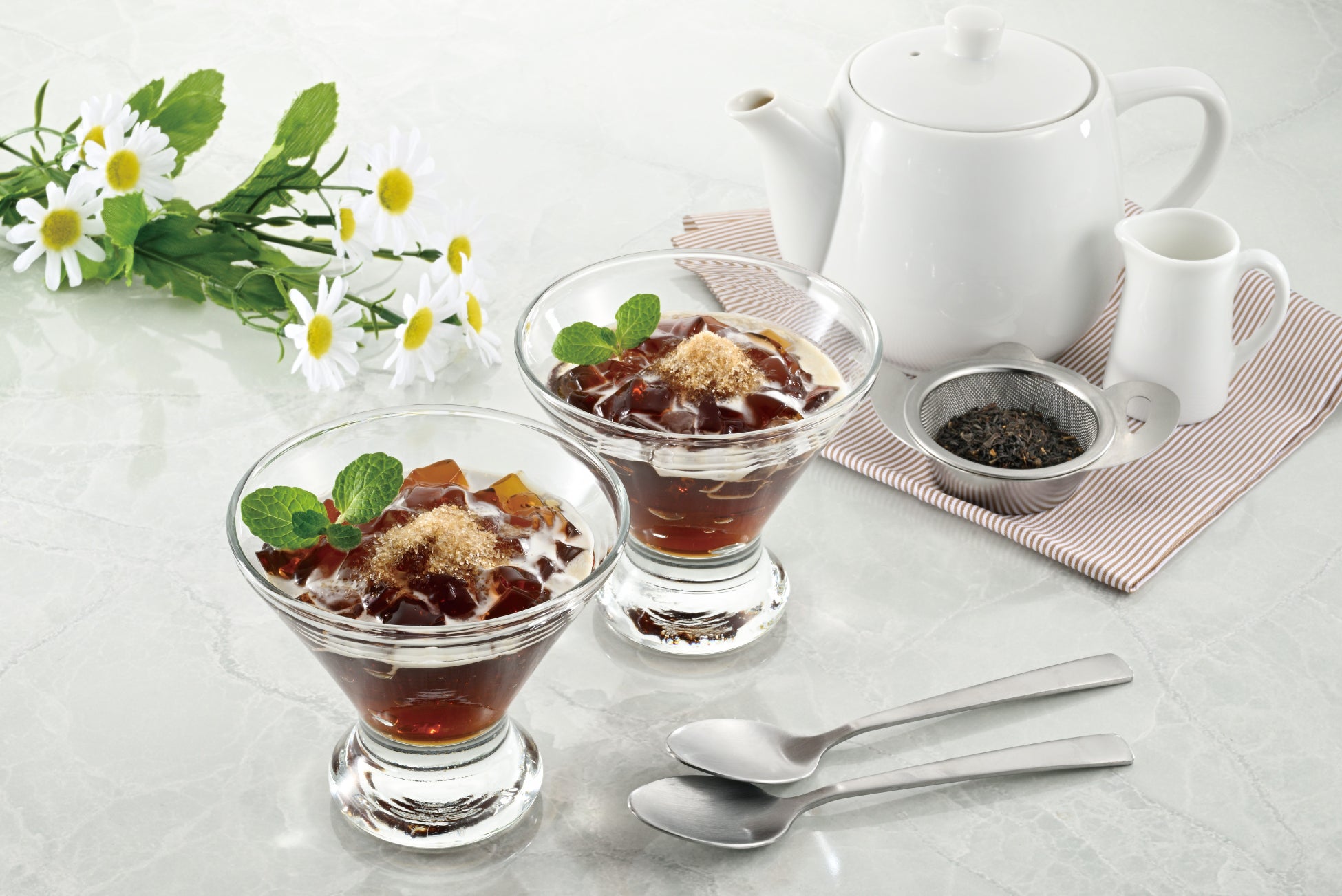 瑞々しい食感のゼリーに新しくなりました。一口食べると、包み込まれていた紅茶の風味がふわりと広がります。