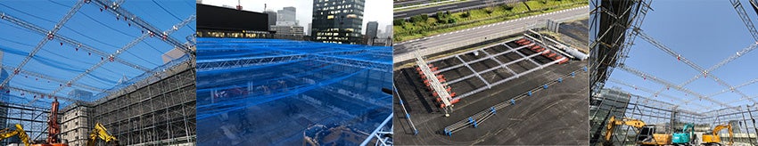 「Cage System」は足場に取り付ける養生のため、躯体にアンカー取付けや鉄骨の取付け、