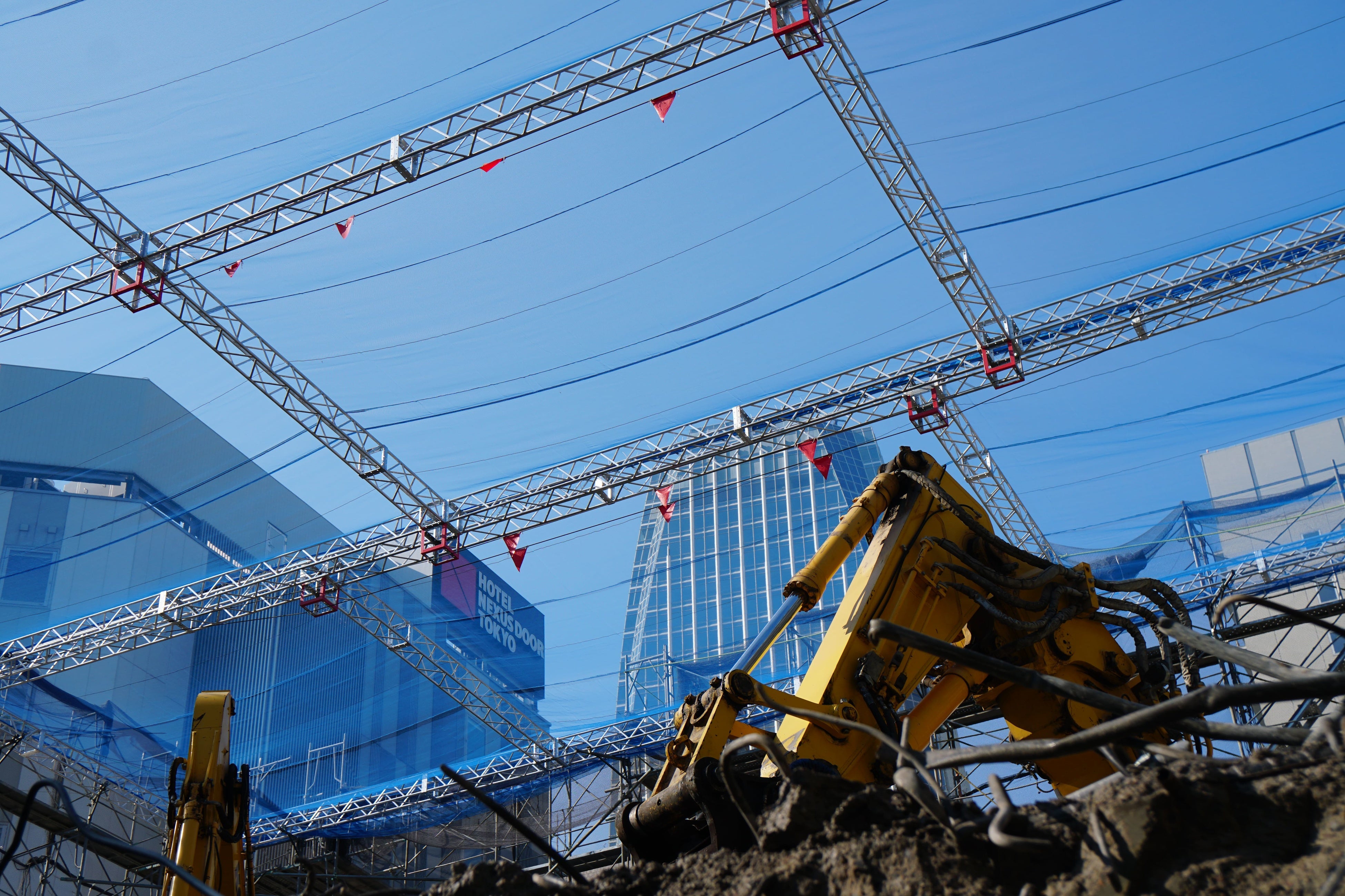 重機の稼働範囲に影響が出ない様、たわみを防ぎ、十分な高さを確保。