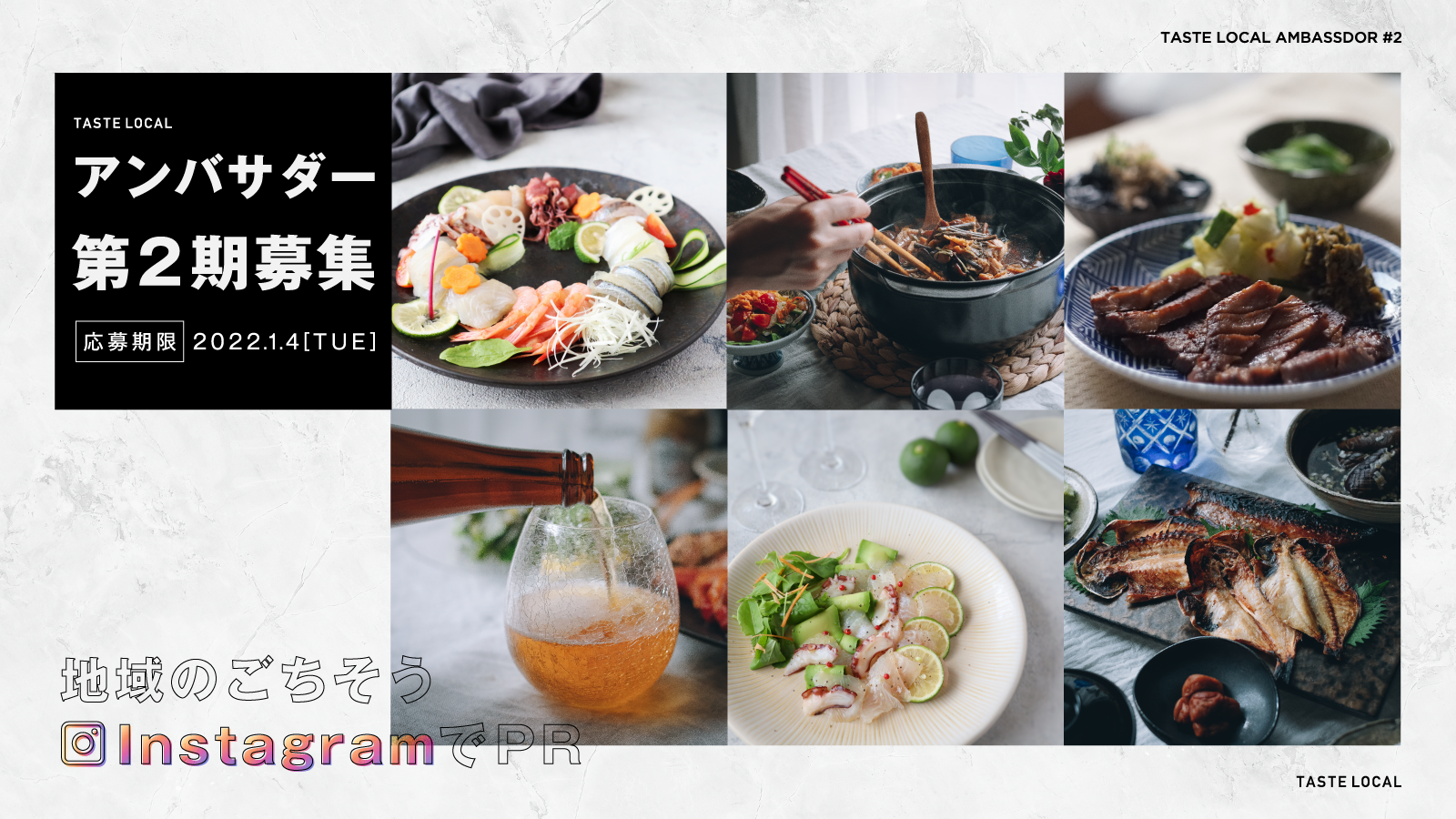 株式会社Taste Local(本社:東京都渋谷区、代表取締役社長:篠塚 孝哉)が運営する、一流宿や名店などの特別な料理を食卓で楽しむことができるグルメEC『TASTE LOCAL』は、地域のごちそうの魅力をSNSで伝える「TASTE LOCALアンバサダー2期」の募集を開始します。
