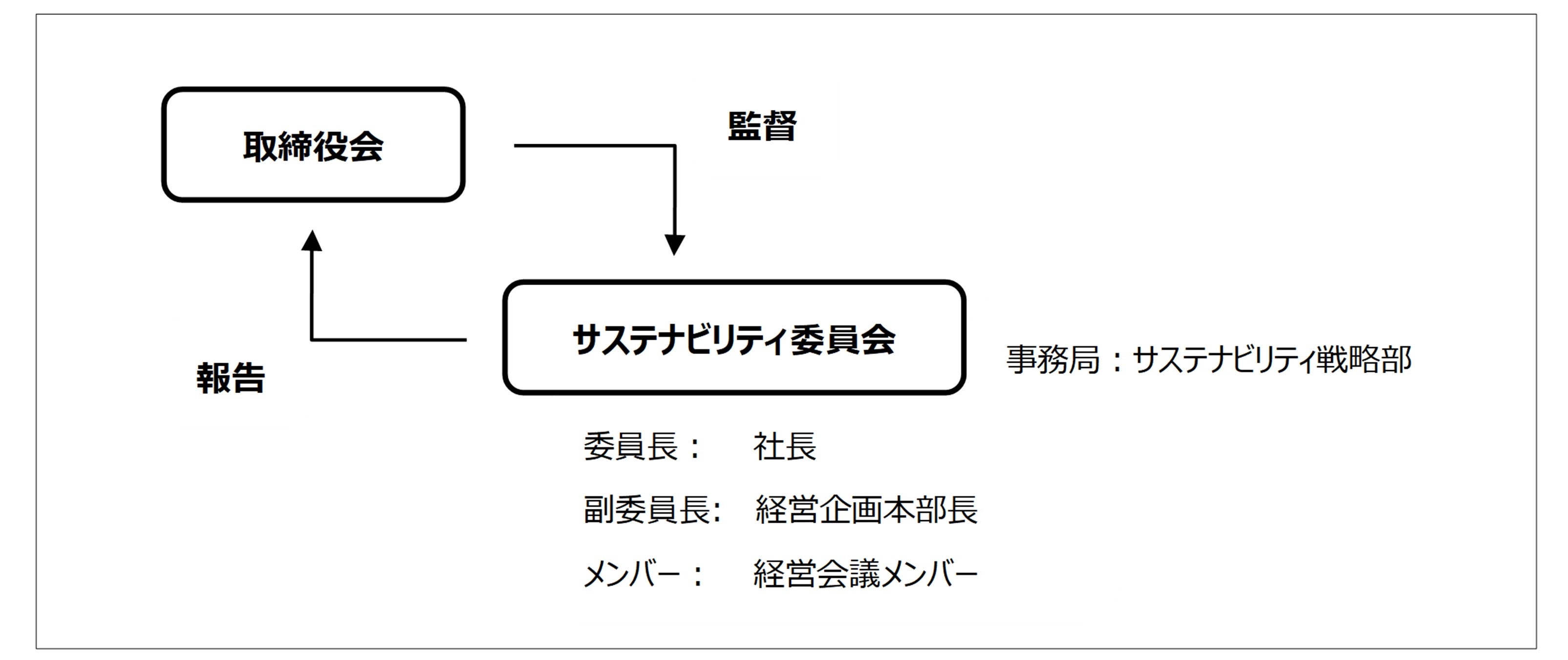 そして、この2022年4月1日に俯瞰的かつ長期的なサステナビリティ経営の戦略と実行をマネジメントする機関として「サステナビリティ委員会(委員長:社長)」を新設しました。加えて、サステナビリティ戦略の実効性を高めグループ全体にて推し進めるため、経営企画部からその機能を切り離し、「サステナビリティ戦略部」を設置し、推進体制を整えました。サステナビリティ戦略部はコーポレート・ガバナンスやコーポレートコミュニケーションの機能も担い、すべてのステークホルダーとの対話を進めます。