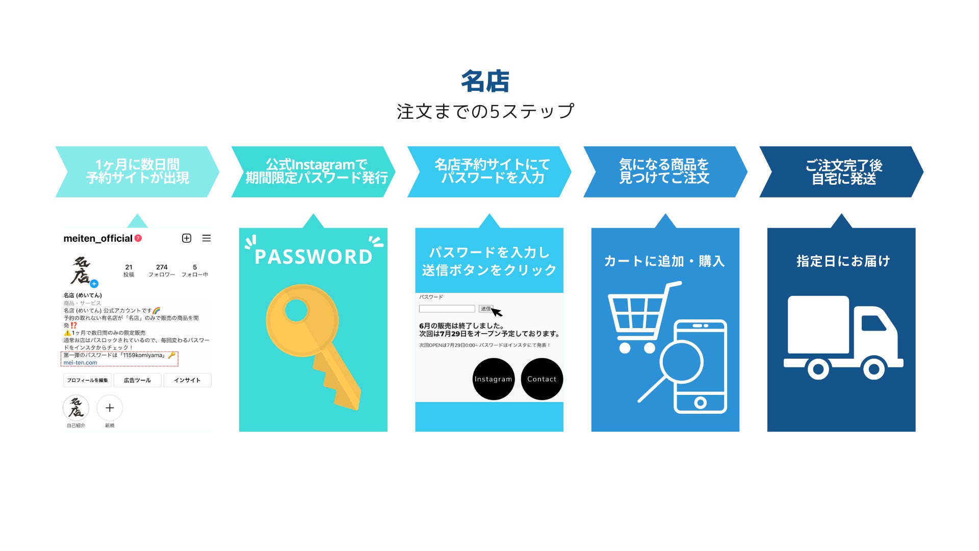 ②『名店』公式Instagramにて期間限定のパスワードを発行/発信