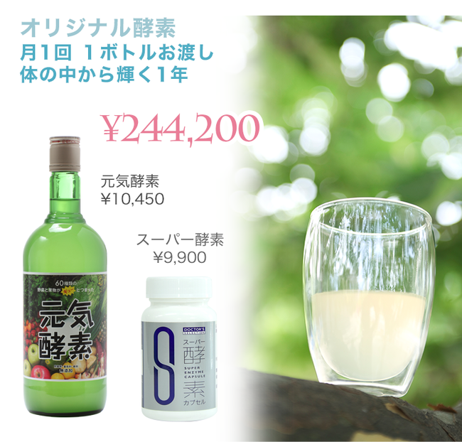 - 酵素商品2種 月1ボトルお渡し(¥244,200相当)