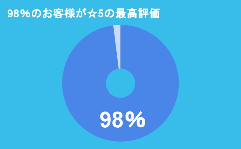 実に98%の方々から☆5つの最高評価を頂きました。 ※2022年5月現在