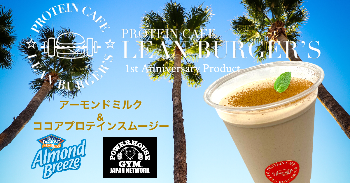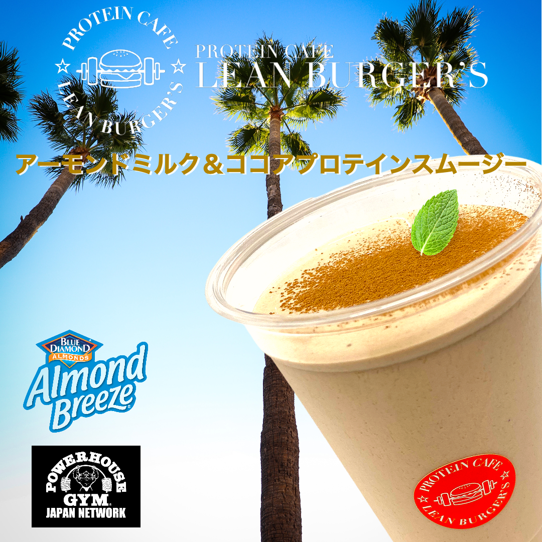 【アーモンドミルク&ココアプロテインスムージー】をLEAN BURGER'Sの1周年記念商品としてアーモンドミルクメーカーのブルーダイヤモンド アーモンド グロワーズ日本支社とオリジナルプロテインを販売しているPOWER HOUSE GYM®︎ JAPAN NETWORKとのコラボレーションにより2022年4月10日より発売致します。